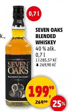 Aktuální slevu na SEVEN OAKS BLENDED WHISKEY 40% alk., 0,7 l zjistíte jednoduše nastavením Strážce slev .
