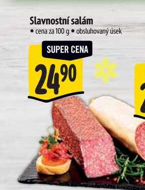 Aktuální slevu na Slavnostní salám 100 g zjistíte jednoduše nastavením Strážce slev .
