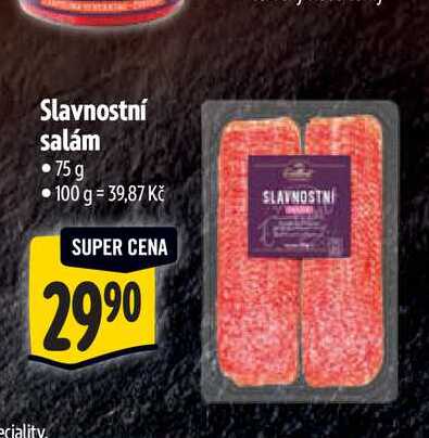 Aktuální slevu na Slavnostní salám 75 g zjistíte jednoduše nastavením Strážce slev .