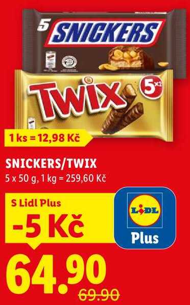 Aktuální slevu na SNICKERS/TWIX, 5x 50 g zjistíte jednoduše nastavením Strážce slev .
