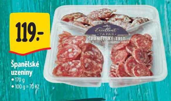 Aktuální slevu na Španělské uzeniny 170 g zjistíte jednoduše nastavením Strážce slev .