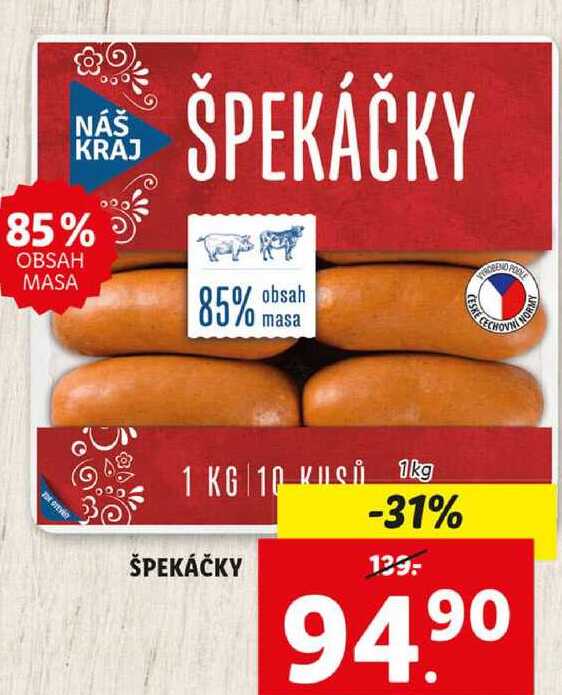 Aktuální slevu na ŠPEKÁČKY, 1 kg zjistíte jednoduše nastavením Strážce slev .