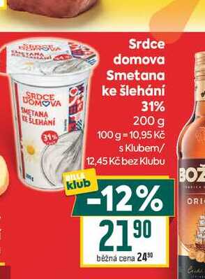 Srdce domova Smetana ke šlehání 31% 200 g