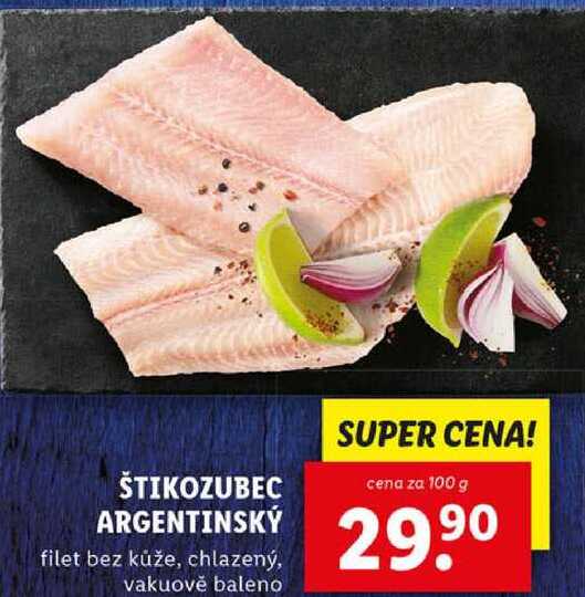 Aktuální slevu na ŠTIKOZUBEC ARGENTINSKÝ, cena za 100 g zjistíte jednoduše nastavením Strážce slev .