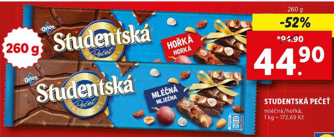 Aktuální slevu na STUDENTSKÁ PEČEŤ, 260 g zjistíte jednoduše nastavením Strážce slev .