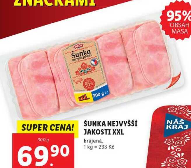 Aktuální slevu na ŠUNKA NEJVYŠŠÍ JAKOSTI XXL, 300 g zjistíte jednoduše nastavením Strážce slev .