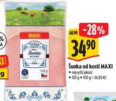 Aktuální slevu na Šunka od kosti MAXI, 130 g zjistíte jednoduše nastavením Strážce slev .