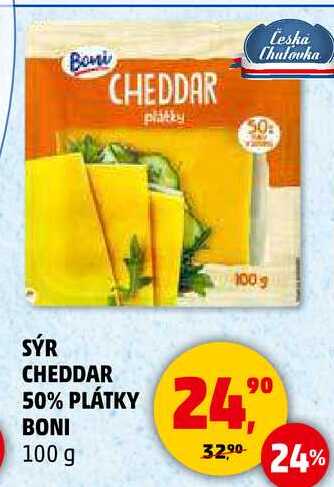 Aktuální slevu na SÝR CHEDDAR 50% PLÁTKY BONI, 100 g zjistíte jednoduše nastavením Strážce slev .