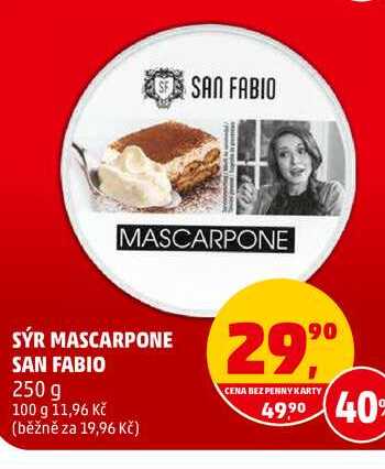 Aktuální slevu na SÝR MASCARPONE SAN FABIO, 250 g zjistíte jednoduše nastavením Strážce slev .