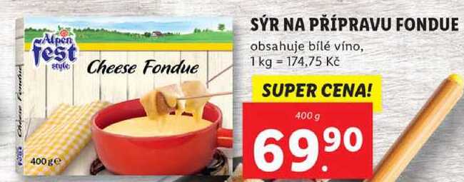 Aktuální slevu na SÝR NA PŘÍPRAVU FONDUE, 400 g zjistíte jednoduše nastavením Strážce slev .
