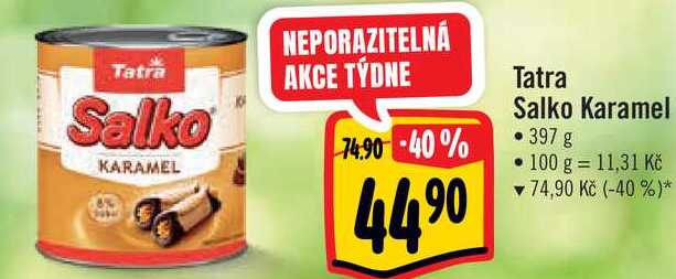 Aktuální slevu na Tatra Salko KARAMEL 397 g zjistíte jednoduše nastavením Strážce slev .