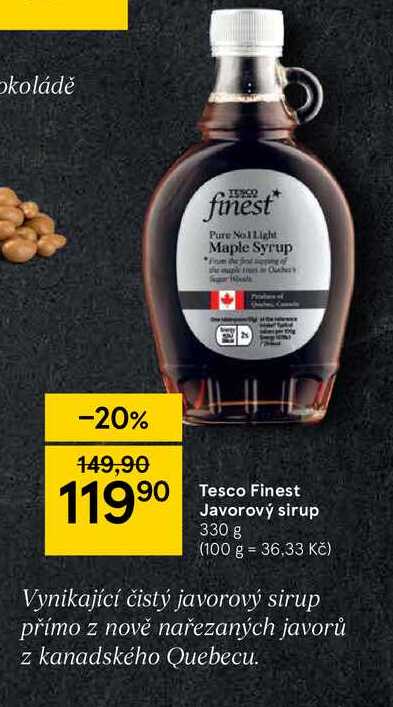 Aktuální slevu na Tesco Finest Javorový sirup 330 g zjistíte jednoduše nastavením Strážce slev .