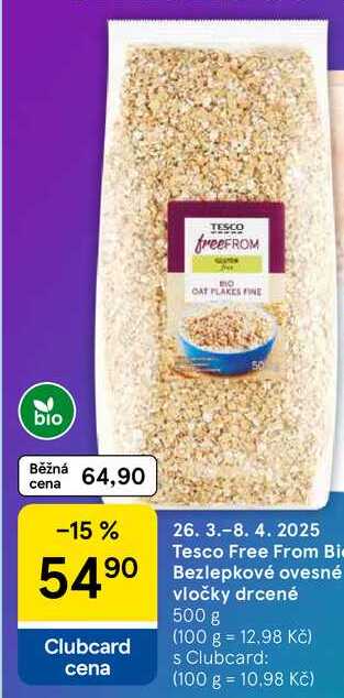 Aktuální slevu na Tesco Free From Bio Bezlepkové ovesné vločky drcené, 500 g zjistíte jednoduše nastavením Strážce slev .