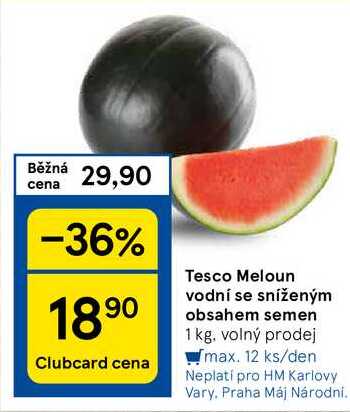 Aktuální slevu na Tesco Meloun vodní se sníženým obsahem semen, 1 kg zjistíte jednoduše nastavením Strážce slev .