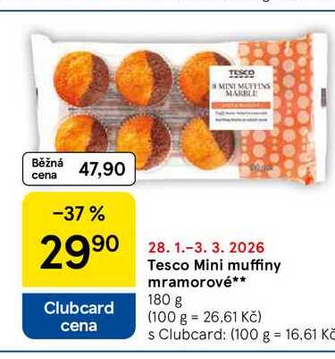 Aktuální slevu na Tesco Mini muffiny mramorové, 180 g zjistíte jednoduše nastavením Strážce slev .