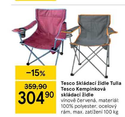 Tesco Skládací židle Tulla Tesco Kempinková skládací židle