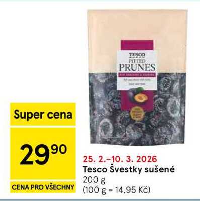 Aktuální slevu na Tesco Švestky sušené, 200 g zjistíte jednoduše nastavením Strážce slev .