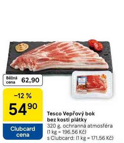 Aktuální slevu na Tesco Vepřový bok bez kosti plátky, 320 g zjistíte jednoduše nastavením Strážce slev .