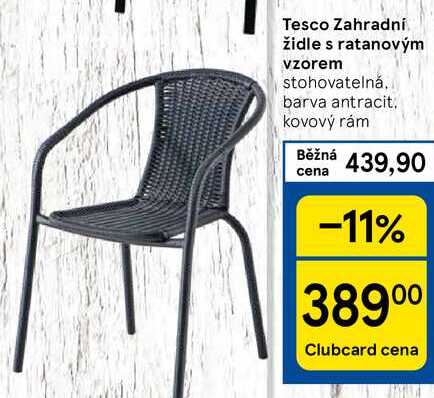 Aktuální slevu na Tesco Zahradní židle s ratanovým vzorem stohovatelná zjistíte jednoduše nastavením Strážce slev .