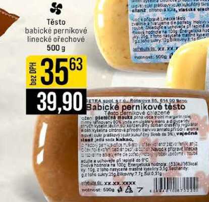 Aktuální slevu na Těsto babické perníkové linecké ořechové 500 g zjistíte jednoduše nastavením Strážce slev .