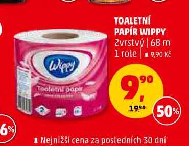 Aktuální slevu na TOALETNÍ PAPÍR WIPPY, 2 vrstvý, 68 m zjistíte jednoduše nastavením Strážce slev .