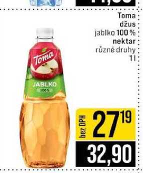 Aktuální slevu na Toma džus jablko 100% nektar různé druhy 1l zjistíte jednoduše nastavením Strážce slev .