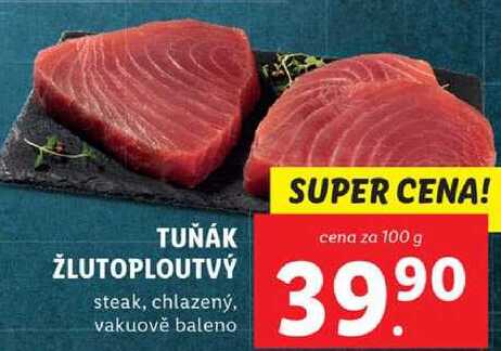 Aktuální slevu na TUŇÁK ŽLUTOPLOUTVÝ, cena za 100 g zjistíte jednoduše nastavením Strážce slev .