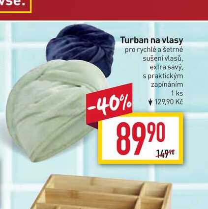 Aktuální slevu na Turban na vlasy pro rychlé a šetrné sušení vlasů, extra savý, s praktickým zapínáním 1 ks zjistíte jednoduše nastavením Strážce slev .