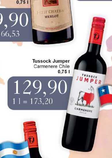 Aktuální slevu na Tussock Jumper Carmenere Chile 0,75l zjistíte jednoduše nastavením Strážce slev .