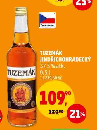 Aktuální slevu na TUZEMÁK JINDŘICHOHRADECKÝ, 0,5 l zjistíte jednoduše nastavením Strážce slev .