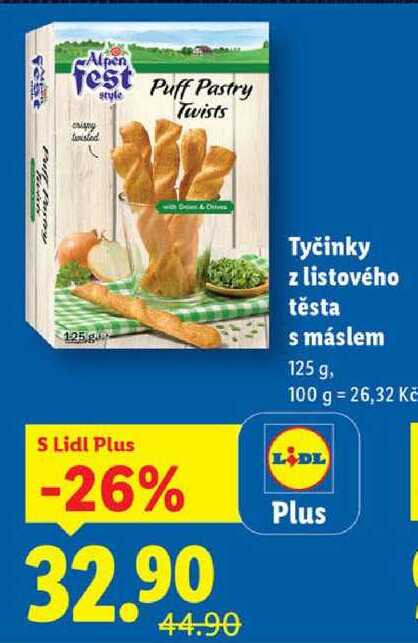 Aktuální slevu na Tyčinky z listového těsta s máslem, 125 g zjistíte jednoduše nastavením Strážce slev .