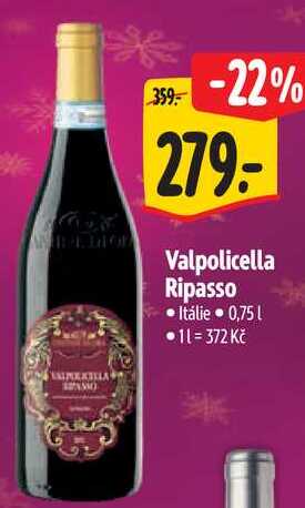 Aktuální slevu na Valpolicella Ripasso, 0,75 l zjistíte jednoduše nastavením Strážce slev .