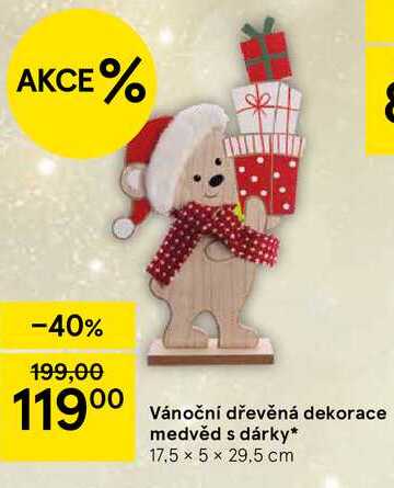 Aktuální slevu na Vánoční dřevěná dekorace medvěd s dárky, 17.5 x 5 x 29,5 cm zjistíte jednoduše nastavením Strážce slev .