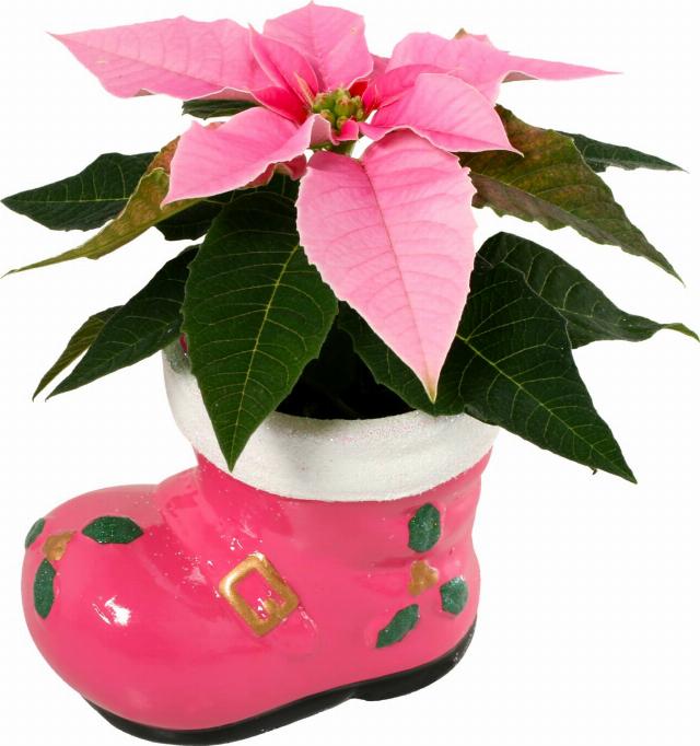 Vánoční hvězda mini v keramickém květináči bota
