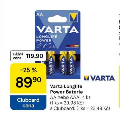 Varta Longlife Power Baterie AA nebo AAA, 4 ks
