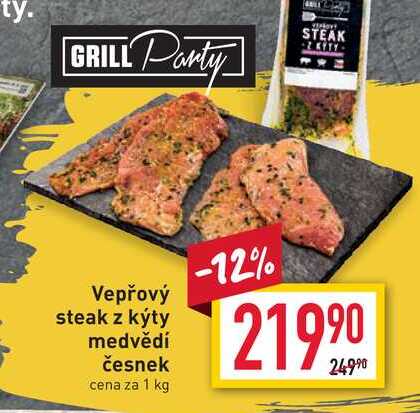Aktuální slevu na Vepřový steak z kýty medvědí česnek cena za 1 kg zjistíte jednoduše nastavením Strážce slev .