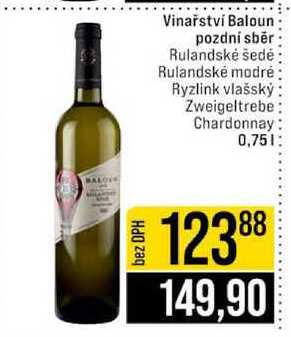 Vinařství Baloun pozdní sběr Rulandské šedé Rulandské modré Ryzlink vlašský Zweigeltrebe Chardonnay 0,75l