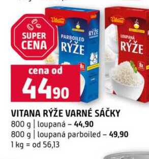 Aktuální slevu na VITANA RÝŽE VARNÉ SÁČKY 800 g loupaná 800 g loupaná parboiled zjistíte jednoduše nastavením Strážce slev .