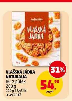 Aktuální slevu na VLAŠSKÁ JÁDRA NATURALIA 80% půlek, 200 g zjistíte jednoduše nastavením Strážce slev .