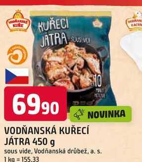 Aktuální slevu na VODŇANSKÁ KUŘECÍ JÁTRA 450 g zjistíte jednoduše nastavením Strážce slev .