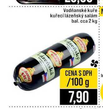 Aktuální slevu na Vodňanské kuře kuřecí lázeňský salám bal. cca 2 kg 100g zjistíte jednoduše nastavením Strážce slev .