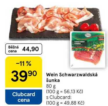 Aktuální slevu na Wein Schwarzwaldská šunka, 80 g zjistíte jednoduše nastavením Strážce slev .