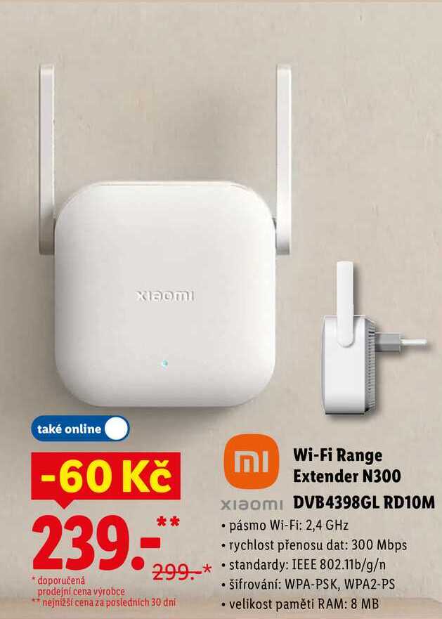 Aktuální slevu na Wi-Fi Range Extender N300 Xiaomi DVB4398GL RD10M zjistíte jednoduše nastavením Strážce slev .