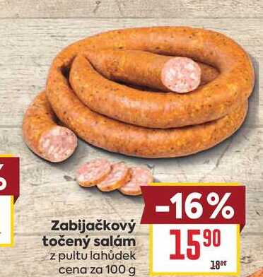 Aktuální slevu na Zabijačkový točený salám z pultu lahůdek cena za 100 g zjistíte jednoduše nastavením Strážce slev .