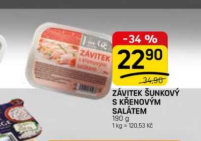 Aktuální slevu na ZÁVITEK ŠUNKOVÝ S KŘENOVÝM SALÁTEM 190 g zjistíte jednoduše nastavením Strážce slev .