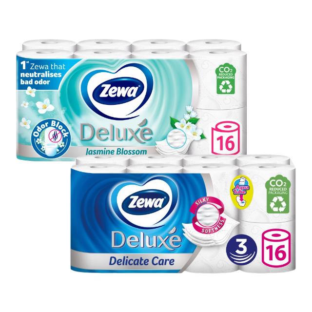 Toaletní papír třívrstvý, různé druhy (Deluxe Delicate Care White, Deluxe Jasmine Blossom). Balení obsahuje 16 rolí. Biologicky rozložitelná a recyklovatelná rolička, kterou můžete spláchnout do záchodu. UPOZORNĚNÍ: Variantu vůně nelze zvolit, bude dodána dle aktuální skladové zásoby.