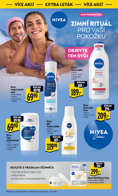 - Nivea Q10 Pleťové mléko, 200 ml v akci, se slevou 29%, za 119,90 Kč , akce platí od 4.2.2026 do 17.2.2026.