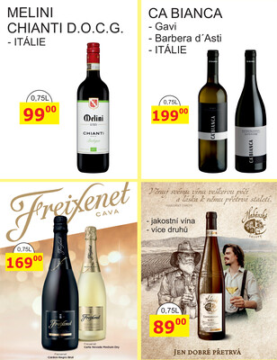 - Ar vína, různé druhy 0,75l v akci, za 99 Kč .