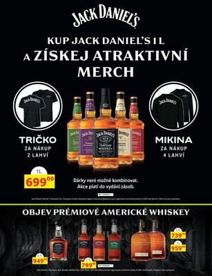 - Jack Daniel's Tennessee Whiskey 1l v akci, za 699 Kč .