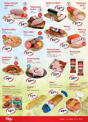 Na 3. stránce letáku CBA potraviny od 1.4. do 12.4.2026 platného od 1.4.2026 do 12.4.2026 najdeme následující zboží v akci.